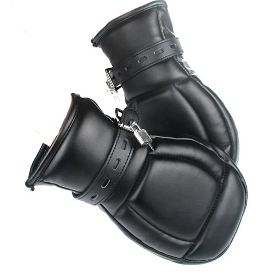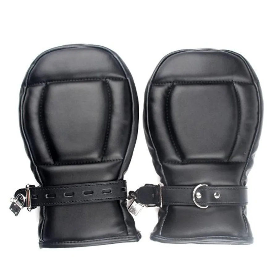 Best Product Soft Padded Black PU Leather Bondage MittsPuppy Mitts Hand CuffsBDSM Bondage Restraints Mitten With