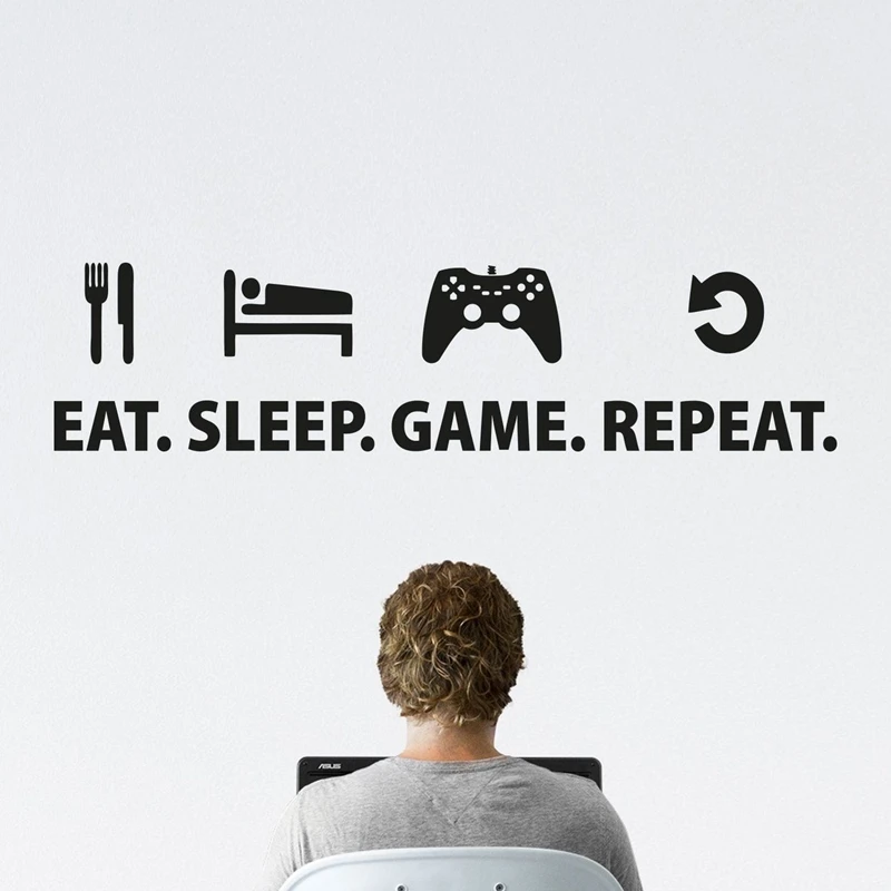 Eat Sleep Game Sticker Repeat Play Game Room Decal Gaming Posters Gamer Vinyl Wall Decals Parede De
